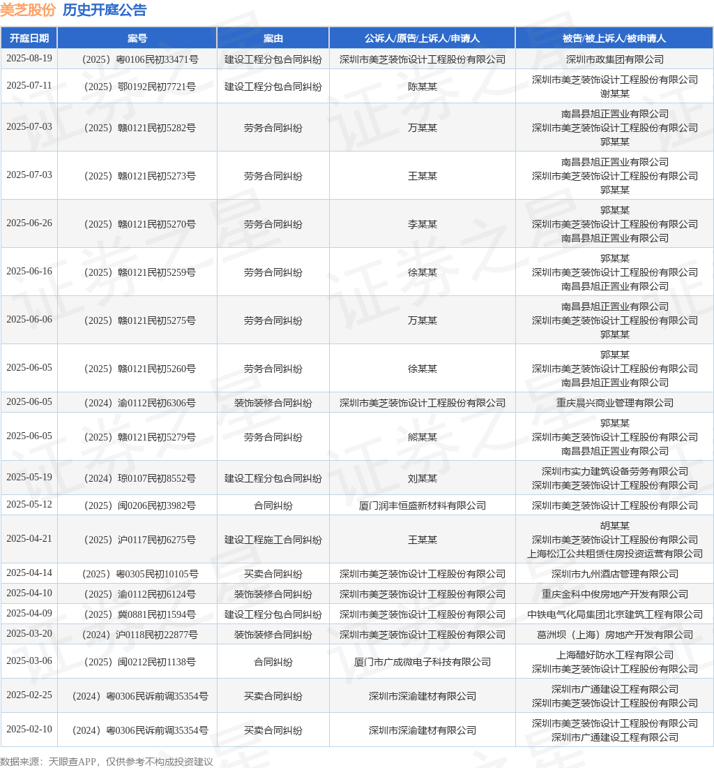 本站消息配资知识推荐网,根据天眼查APP显示,近日公布了一则深圳市美芝装饰设计工程股份有限公司作为原告/上诉人的开庭公告配资知识推荐网,详细内容如下: